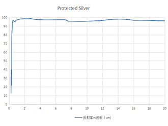 镀银膜反射镜,在可见光到近红外具有很高分反射率。在450-2000nm范围内的平均反射率Ravg>97.5%,是所有金属反射镜中反射率最高的,同时在2-20um的波段范围内具有很高的反射率,Ravg>96%。